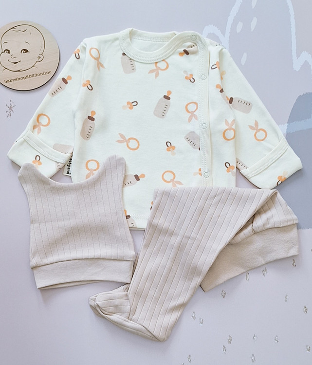 👶🏻این ست کیوت رو بفرس واسه مامانای باردار 🤰🏻 🎊ست نوزادی برند ترک🇹🇷 ✅جنس نخ و پنبه 💯لطیف 👶🏻اسپرت 🔻سایز 0-3 ماه🔻 🔸قد بلوز 28 🔸پهنا 21 🔸آستین 24 🔸قد شلوار 34 🔸فاق 19